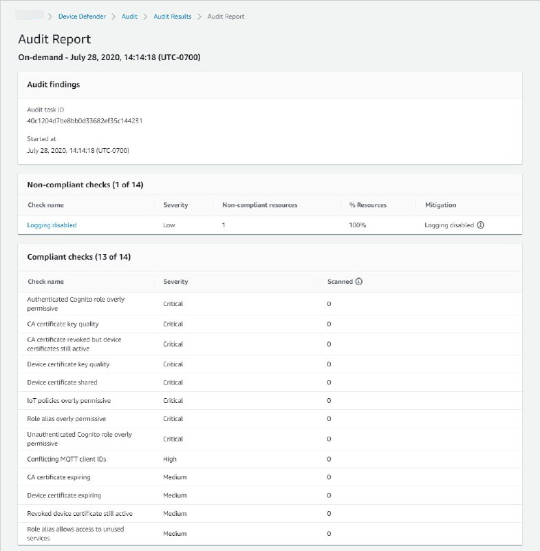 隐藏命令不意味着关闭审计。审计仍会在您的 Amazon IoT 设备上运行。隐藏仅适用于审计结果。